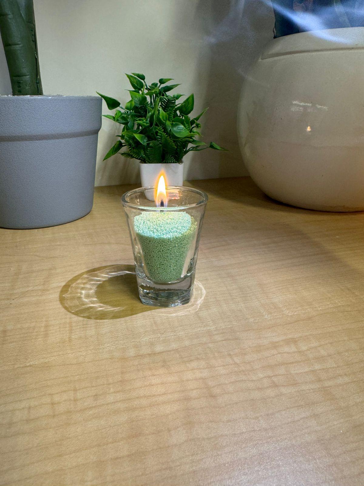 "I got a Pearl Wax Candle and I poured the tiny wax balls into my cup, then I lit it with a little string. it makes my room smell nice and sweet, like candy. I feel happy and it looks pretty too!"