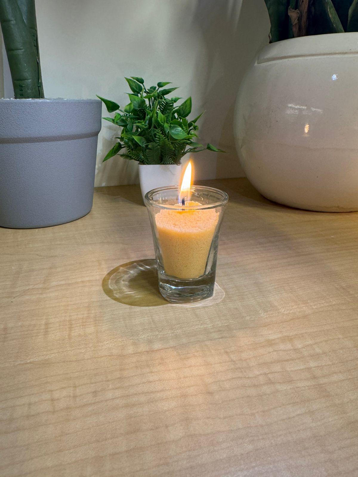 "I got a Pearl Wax Candle and I poured the tiny wax balls into my cup, then I lit it with a little string. it makes my room smell nice and sweet, like candy. I feel happy and it looks pretty too!"