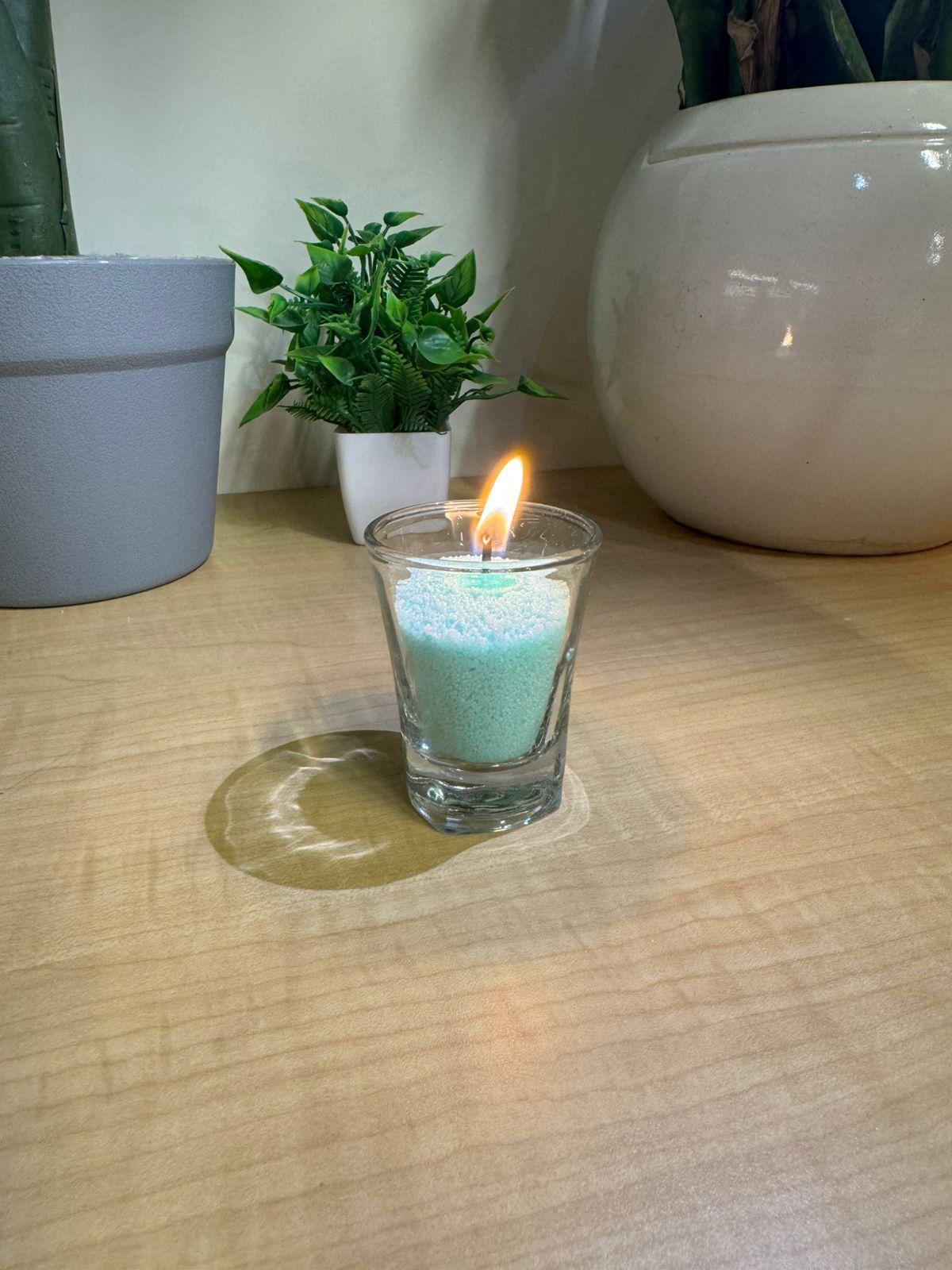 "I got a Pearl Wax Candle and I poured the tiny wax balls into my cup, then I lit it with a little string. it makes my room smell nice and sweet, like candy. I feel happy and it looks pretty too!"